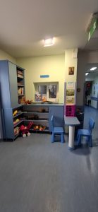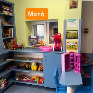 Η βιβλιοθήκη δημιουργήθηκε χάρη στη γενναιόδωρη χορηγία του κ. Χρήστου Γιαννακάκη, την προσφορά εργασίας του κ. Κώστα Αρβανίτη και τον συντονισμό της κας Κατερίνας Πανάγου, συμβάλλοντας στη διαμόρφωση ενός ζεστού και φιλόξενου χώρου για τους μικρούς ασθενείς της κλινικής.